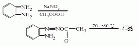 1.由鄰苯三胺與亞硝酸鈉反應(yīng)而得。將鄰苯二胺加入50℃水中溶解,再加入冰醋酸,降溫至5℃,加入亞硝酸鈉攪拌反應(yīng)。反應(yīng)物漸漸變成暗綠色,溫度升至70-80℃,溶液變?yōu)榻奂t色,于室溫放置2h,冷卻,濾出結(jié)晶,用冰水洗滌,干燥得粗品,將粗品減壓蒸餾,收集201-204℃(2.0kpa)的餾分,再用苯重結(jié)晶,可得熔點為96-97℃的產(chǎn)品,產(chǎn)率80%左右。曾有報道用亞硝酸鈉處理多菌靈的縮合廢水而得副產(chǎn)物苯并三氮唑。